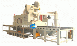 特点: 1、输送方式:平皮带式、三角带输送或滚轴输送式,输送速度可调节。 2、喷枪运动方式:喷枪摆动或直线移动,速度可调节。 3、喷枪数量:可根据产品需求而设置喷枪数量。 适用范围: ......适用于各类板材、型材、面包炉、烤盘、平板玻璃、音响面板等。 使用客户: .....上海华晖幕墙制作工程有限公司、江门日新不锈钢有限公司、深圳长营电器、香港 森成、深圳上泰玻璃、东莞信益玻璃、珠海及成科技均用此类机型进行喷砂工艺处理。
