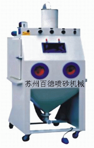 特点: 1. 本机采用半自动化结构,可同时进行喷砂 与吹净处理,工作效率高,操作简单。 2. 采用自动回收分离砂料,并配有双级分离与 滤芯式除尘,可降低砂料损耗,环保性能好。 适用范围: 适用于塑胶表面美容处理,旧塑胶件翻新美容, 其效果与新机壳比较,质地、色泽、耐久性、抗 老性、强度100%相同,亮泽度,外观优于新机壳。